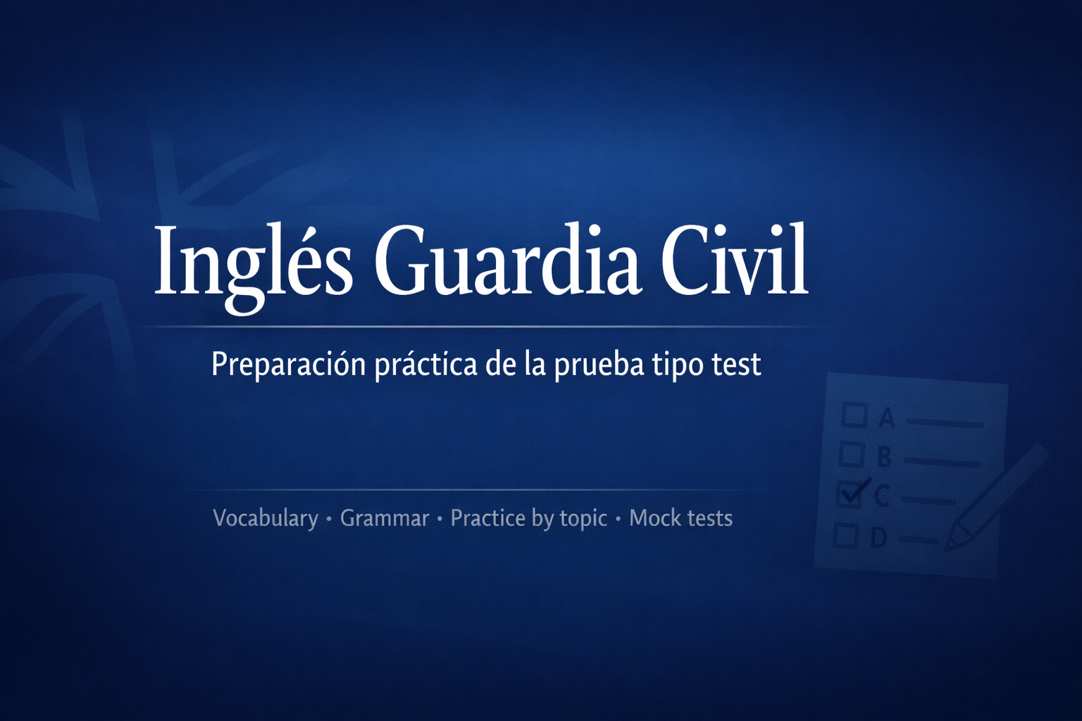Prepara la prueba de inglés de Guardia Civil con un curso práctico y orientado al examen real. Trabaja vocabulario, gramática, ejercicios por bloques y simulacros para mejorar tu seguridad y tu rendimiento.